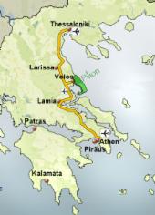 Athens and Thessaloniki. The next town is Volos at a distance of 50 km.